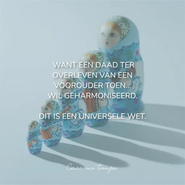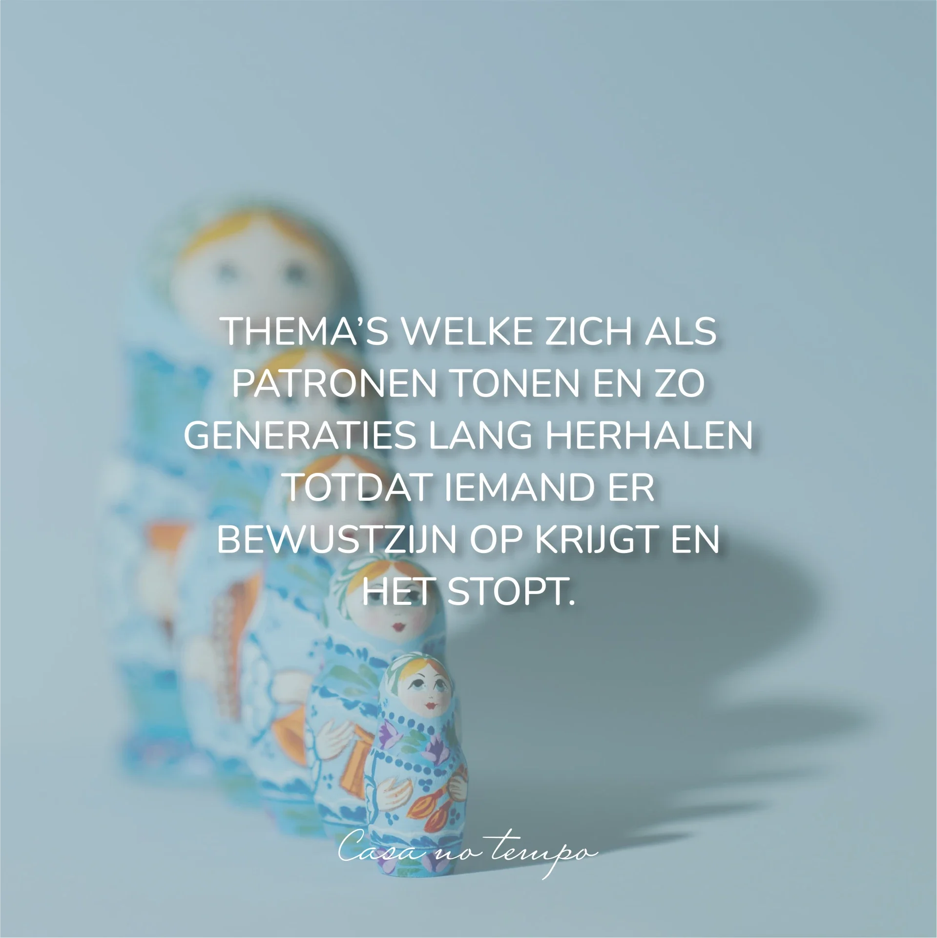 Dit is geen toeval, maar een levenswet. Door de pijn van je voorouders te erkennen, eren en doorvoelen, wordt de binding geheeld. Zo kun jij de levensenergie weer volledig ervaren en ontstaat er o.a. vertrouwen, inzicht, rust en daadkracht binnenin jou en je familiesysteem. Een helende beweging van overleven naar leven.