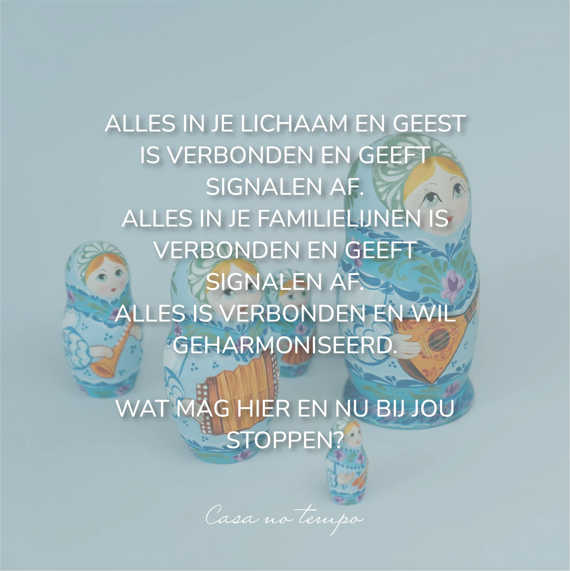 Het onzichtbare wat zo voelbaar en altijd aanwezig is, tot we bereid zijn aan te kijken wat doorleefd en afgerond wil worden vanuit je voorouderlijke lijnen.